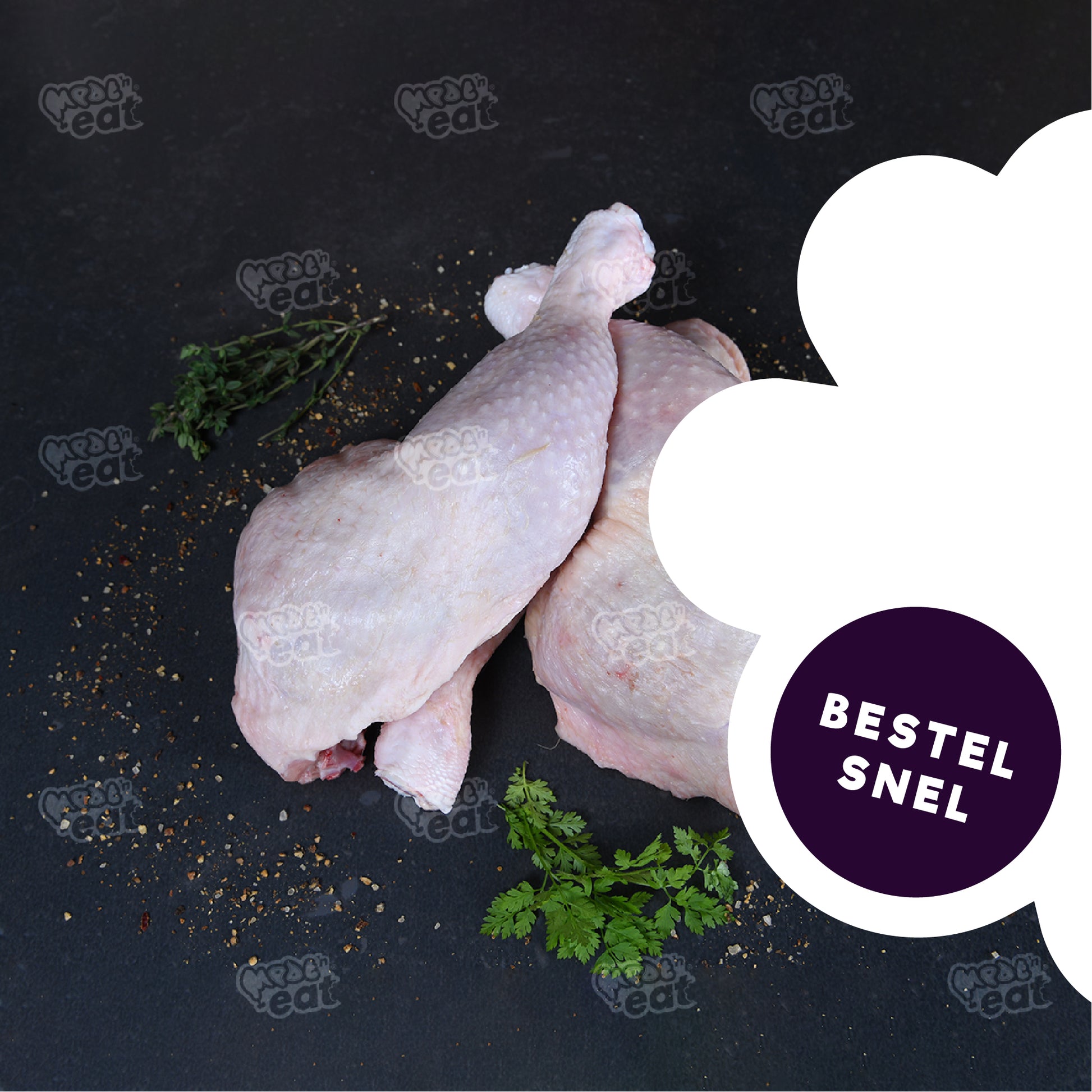 Heerlijk malse kippenbouten van Meat & Eat, malser dan dit ga je niet krijgen. De kippenbout bestaat uit een onderbout en bovenbout. Geschikt om te bakken in de pan, op de barbeque maar ook gemakkelijk om te koken; kippenbouillon of een ragout. De bout kan tussen het gewricht gesneden worden in een boven- en een onderbout.